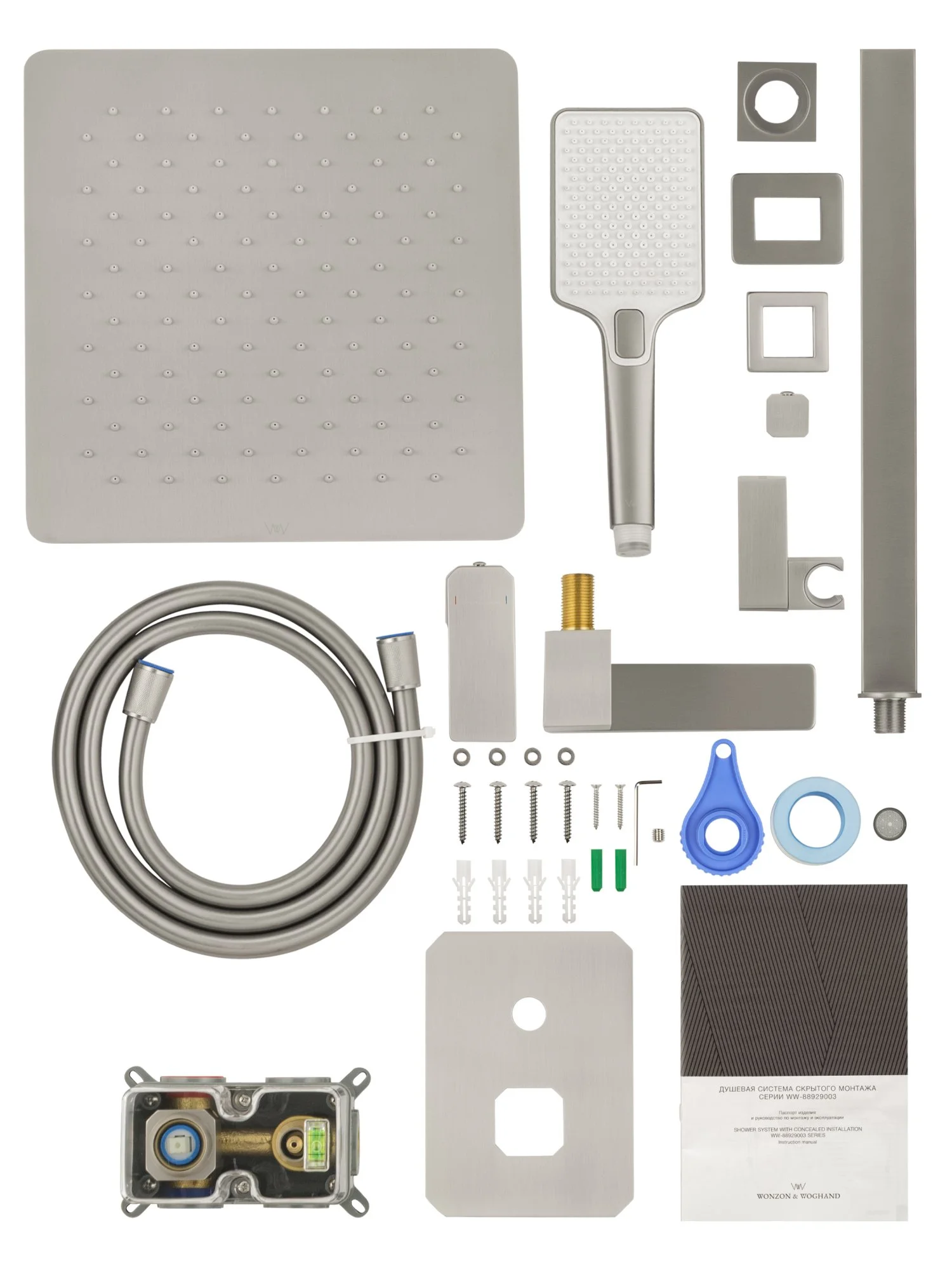 смеситель, душевой шланг, держатель для душа, верхний душ, душевая лейка, монтажный комплект