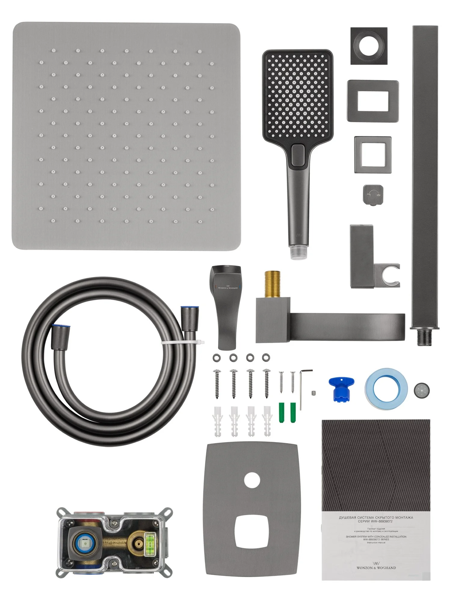 смеситель, душевой шланг, держатель для душа, верхний душ, душевая лейка, монтажный комплект