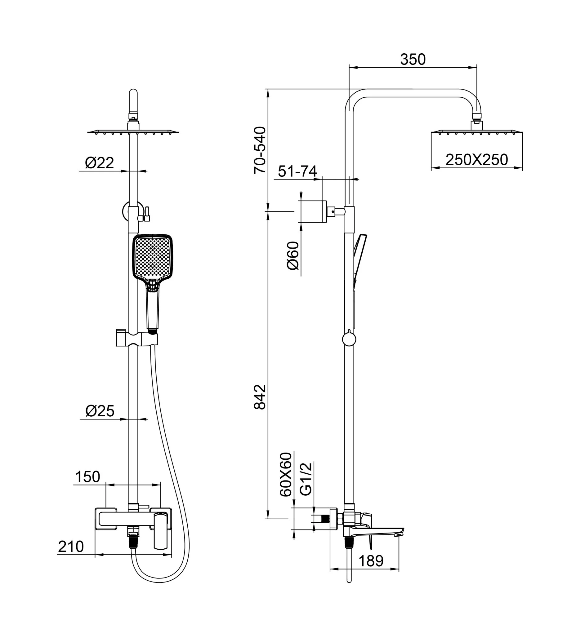 смеситель, душевой шланг, держатель для душа, душевая штанга, верхний душ, душевая лейка, эксцентрики, монтажный комплект
