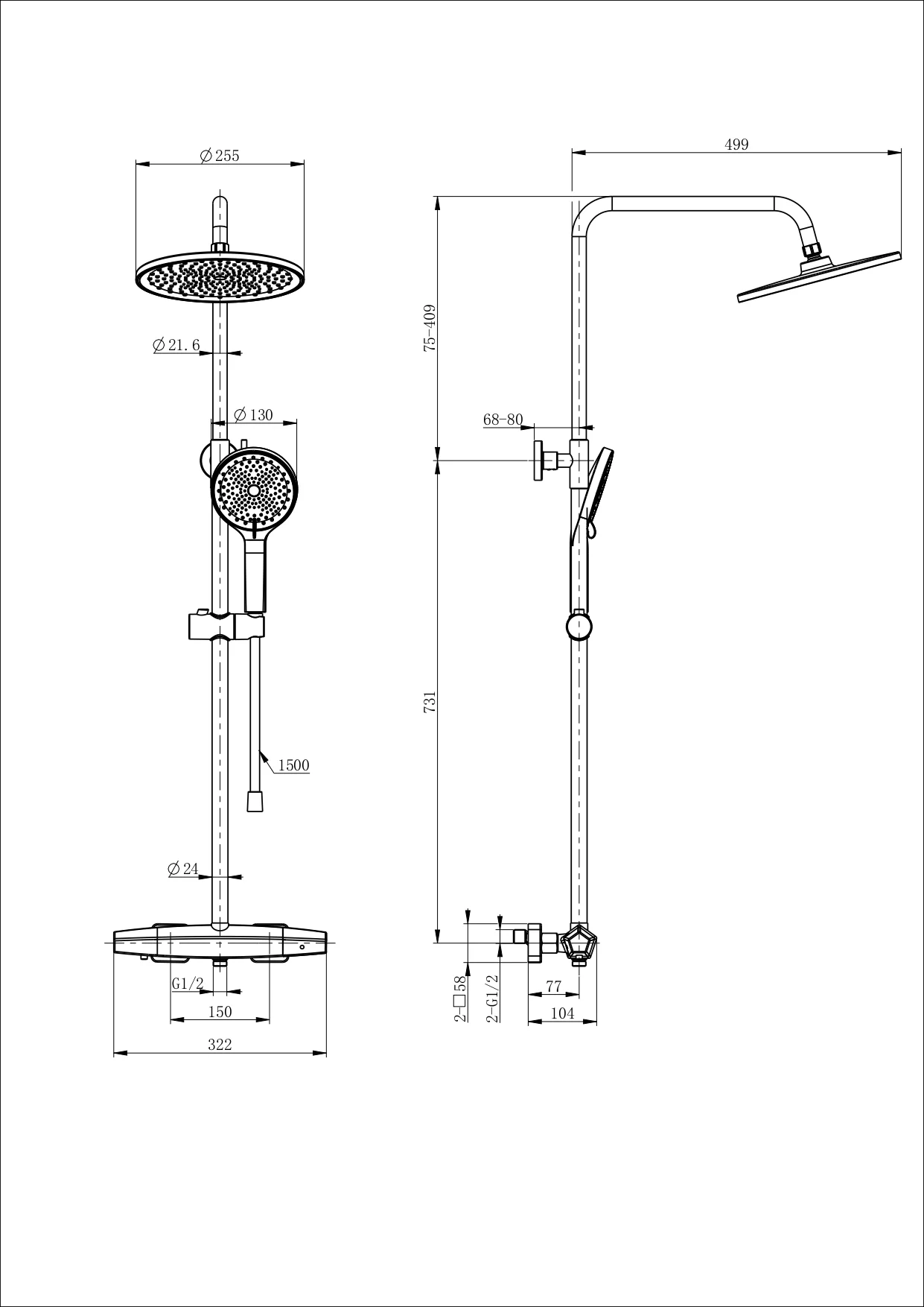 смеситель, душевой шланг/ держатель для душа, душевая штанга, верхний душ, душевая лейка, эксцентрики, монтажный комплект