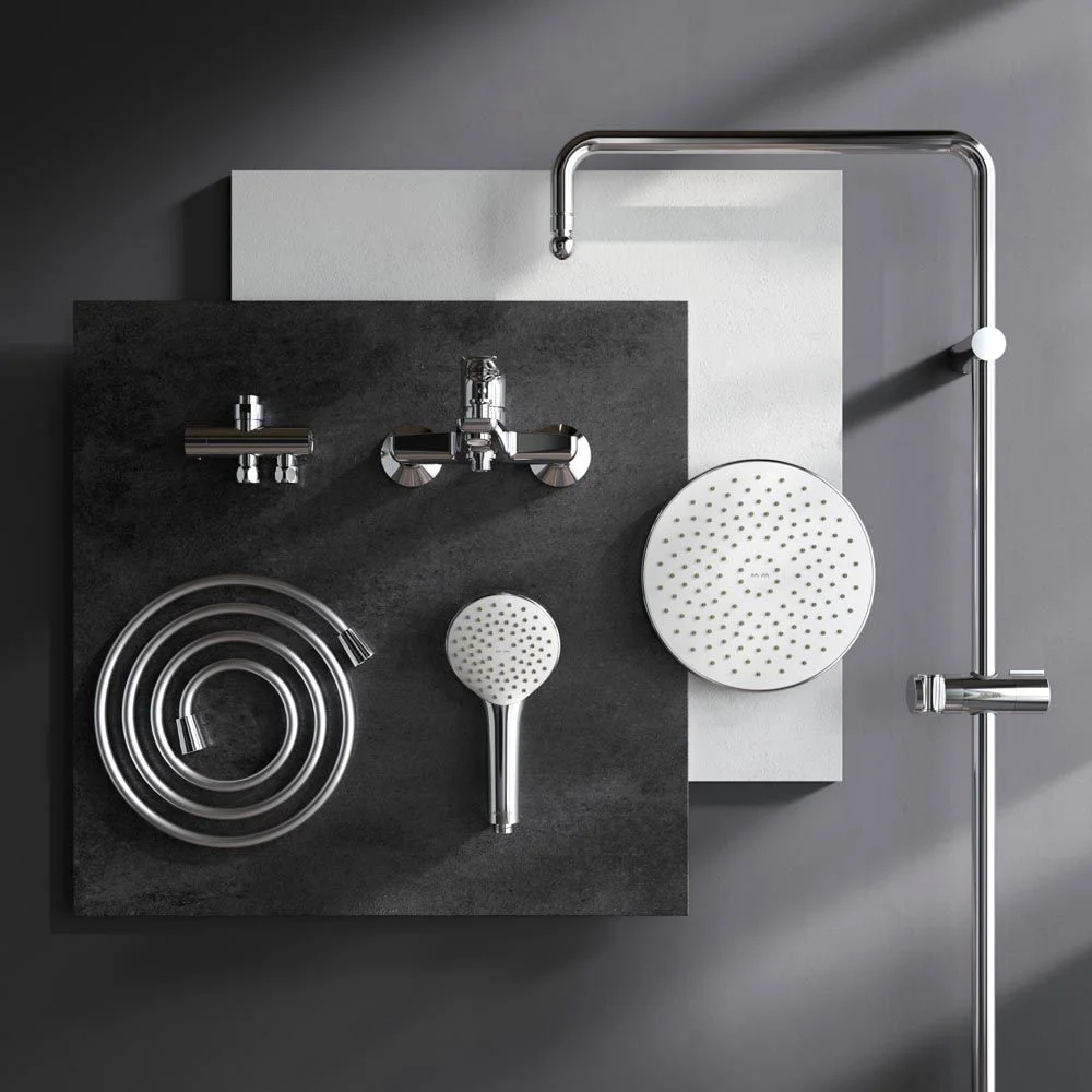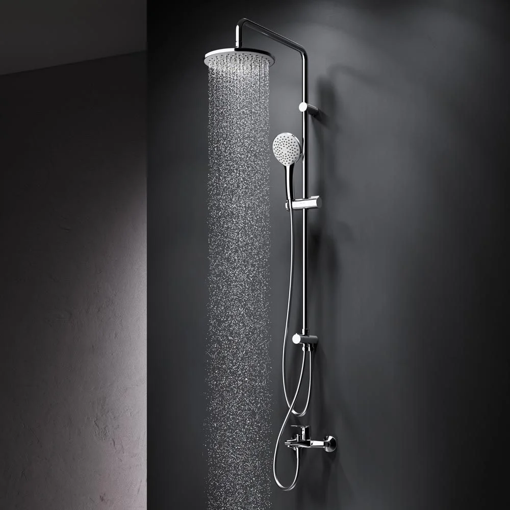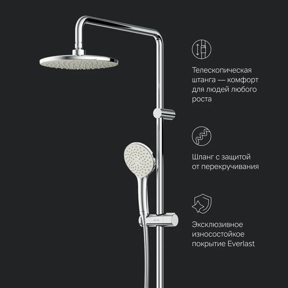 Диаметр душевых леек (верхний душ 220 мм и ручной душ 110 мм) позволит ощутить преимущества тропического душа даже в стандартной ванной тогда как увеличенная длина шланга 1750 м