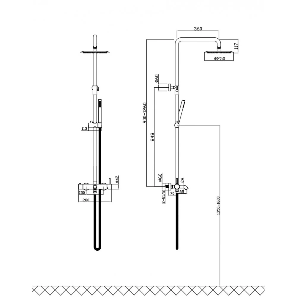 Длина душевого шланга, мм