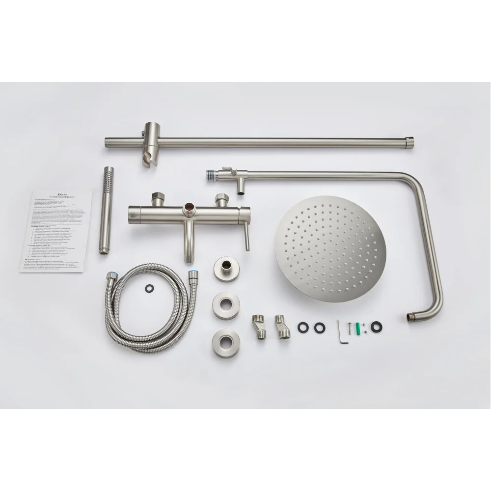 Смеситель - 1 шт., ручная лейка - 1 шт., шланг - 1 шт., верхний душ - 1 шт., штанга с держателем ручной лейки 1 шт., кронштейн для верхнего душа 1 шт, паспорт - 1 шт.