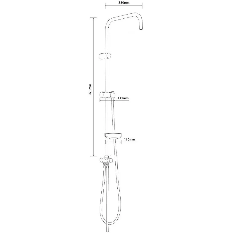 Штанга для душевой системы: пластиковая быстросъемная мыльница, переключатель потоков, шланг 150 см (в металлической оплетке) с защитой от перекручивания, регулируемый по высоте и наклону держатель ручного душа, держатель штанги с регулировкой по высоте - возможность установки в старые отверстия.