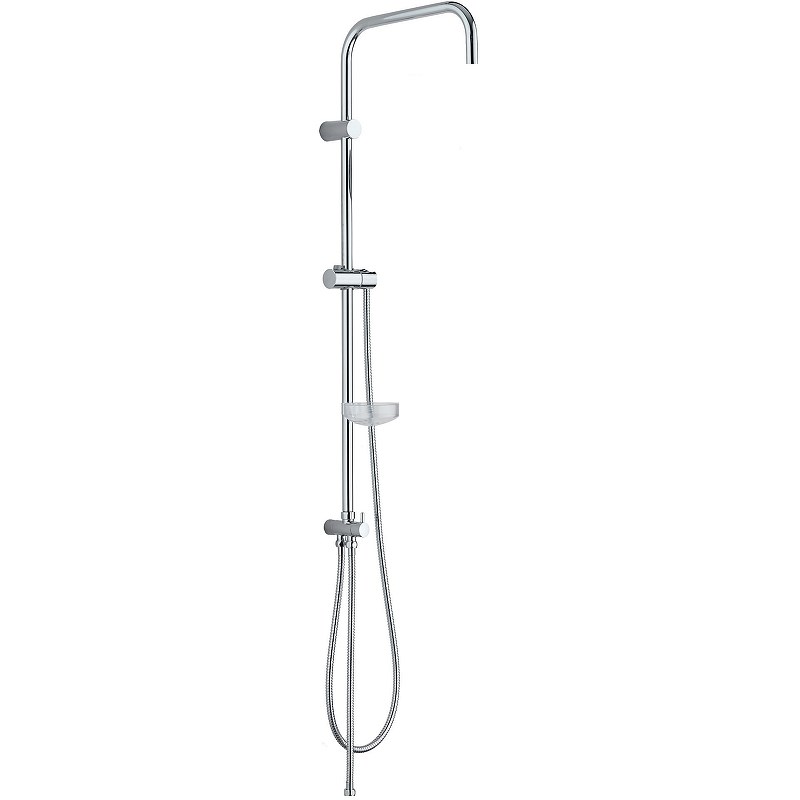 Штанга для душевой системы: пластиковая быстросъемная мыльница, переключатель потоков, шланг 150 см (в металлической оплетке) с защитой от перекручивания, регулируемый по высоте и наклону держатель ручного душа, держатель штанги с регулировкой по высоте - возможность установки в старые отверстия.