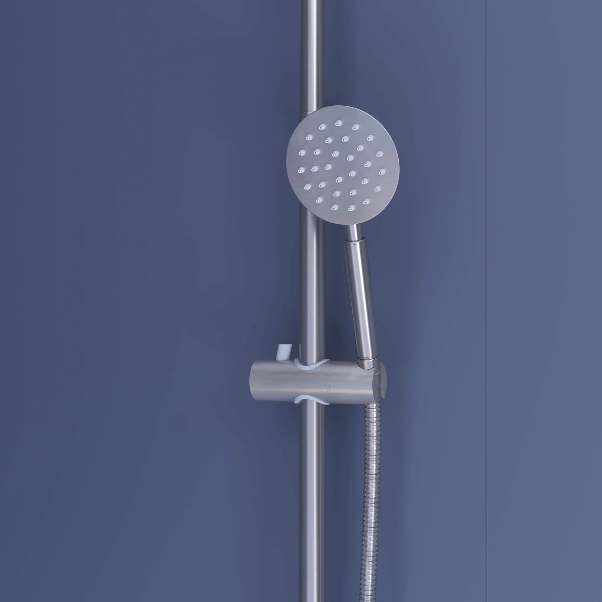 Ручной душ выполнен из нержавеющей стали AISI 304;