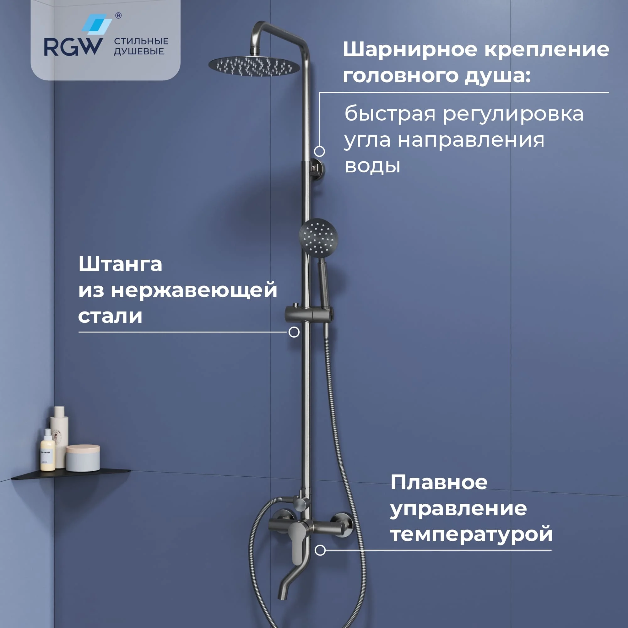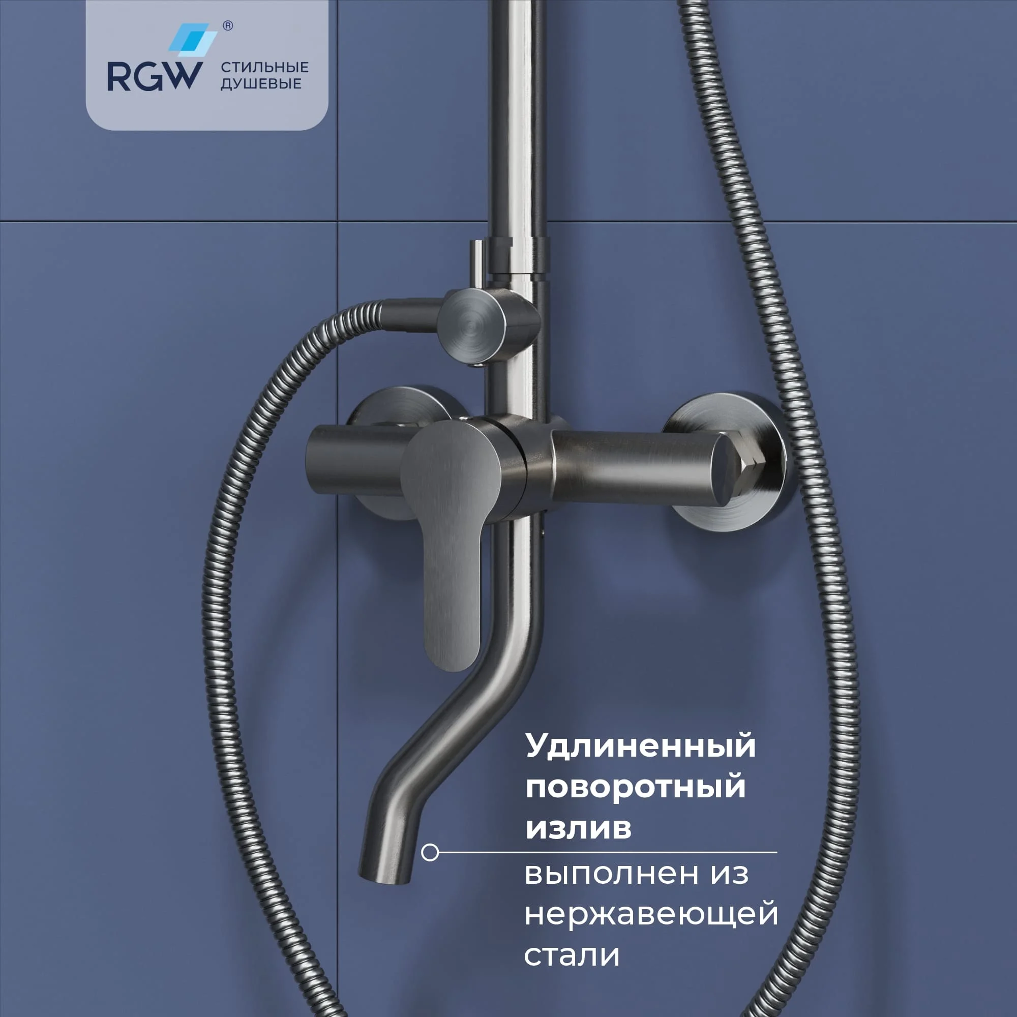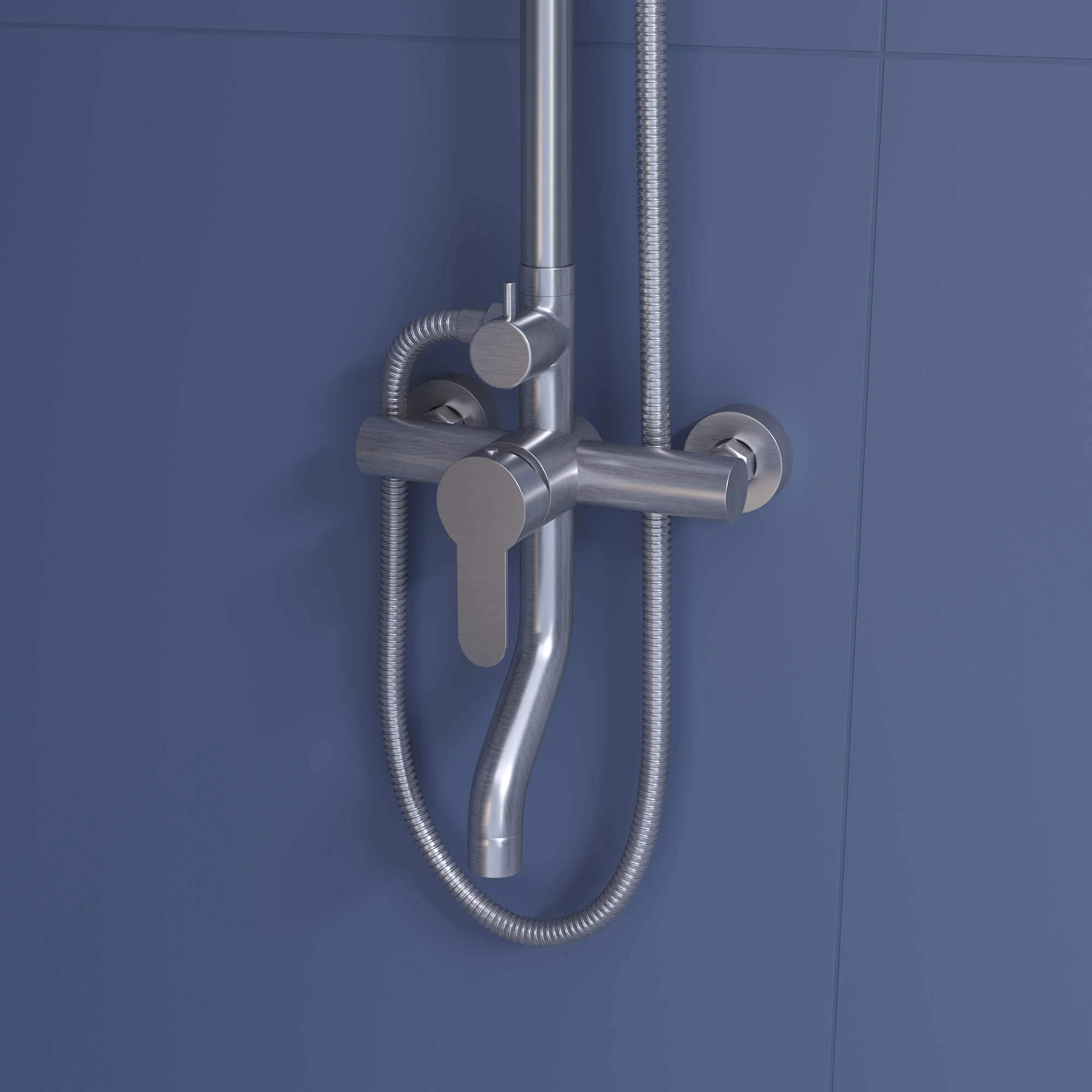 Головной душ выполнен из нержавеющей стали AISI 304 оснащён со шарнирным креплением, что позволяет выбрать необходимый угол направления воды;