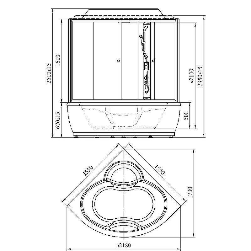 Душевой бокс Radomir Калифорния 1-04-6-0-5-0790 каркас, слив-перелив автомат, стекло прозрачное, функция Пар, FM-приемник, освещение, вентиляция, профиль черный