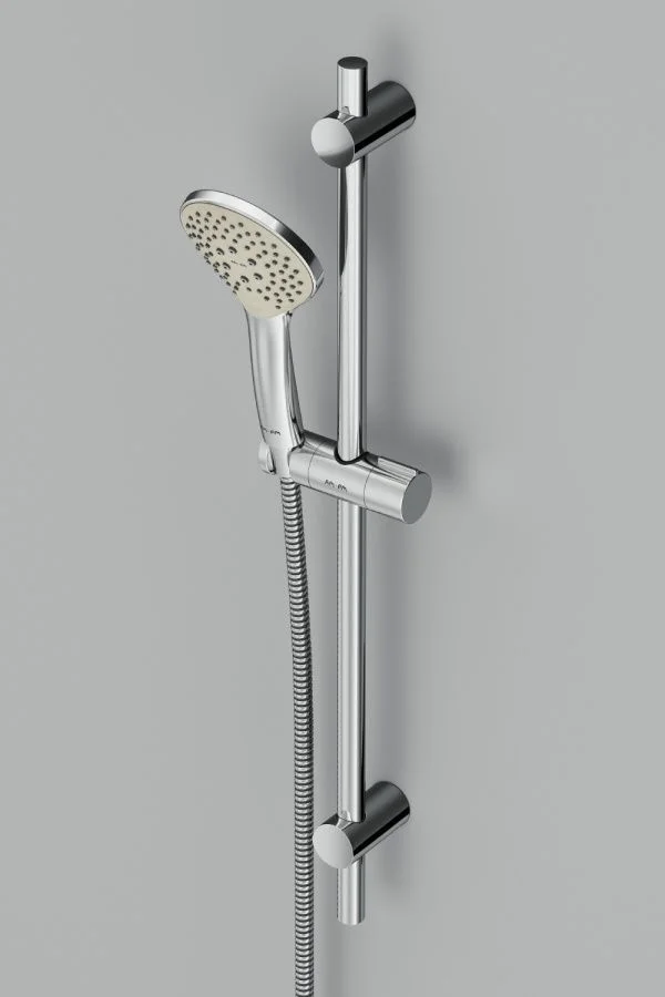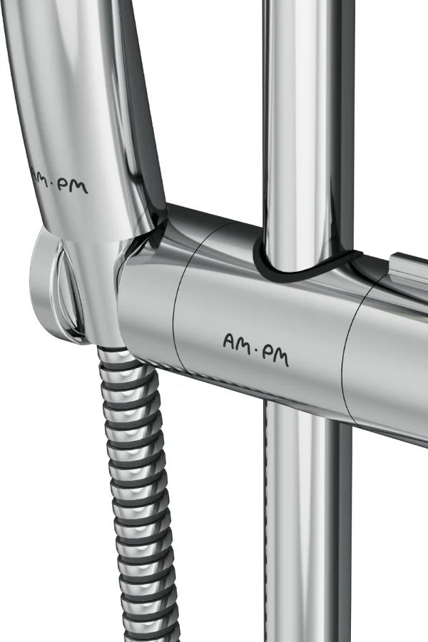 Продуманные детали для удобства использования: шарнирное соединение защищает душевой шланг от перекручивания регулируемый в трех плоскостях держатель ручного душа функция Rub&Clean для легкой очистки душевых форсунок.