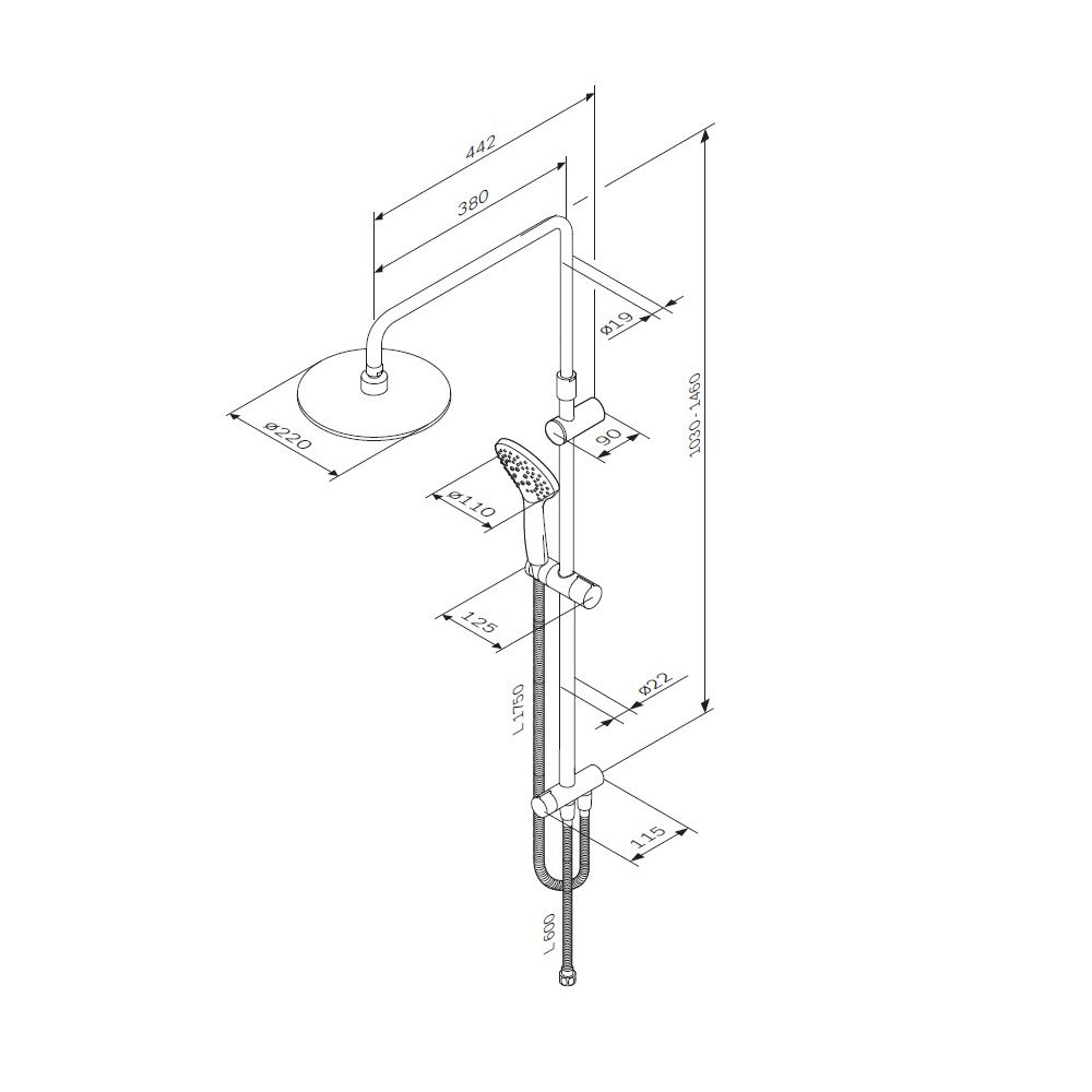 Продуманные детали для удобства использования: штанга регулируется по высоте в диапазоне от 1 030 до 1 460 мм обеспечивая комфорт для людей любого роста шаровый шарнир в держателе верхнего душа позволяет регулировать угол его наклона душевой шланг 1750 мм верхний душ диаметром 220 мм ручной душ диаметром 110 мм.