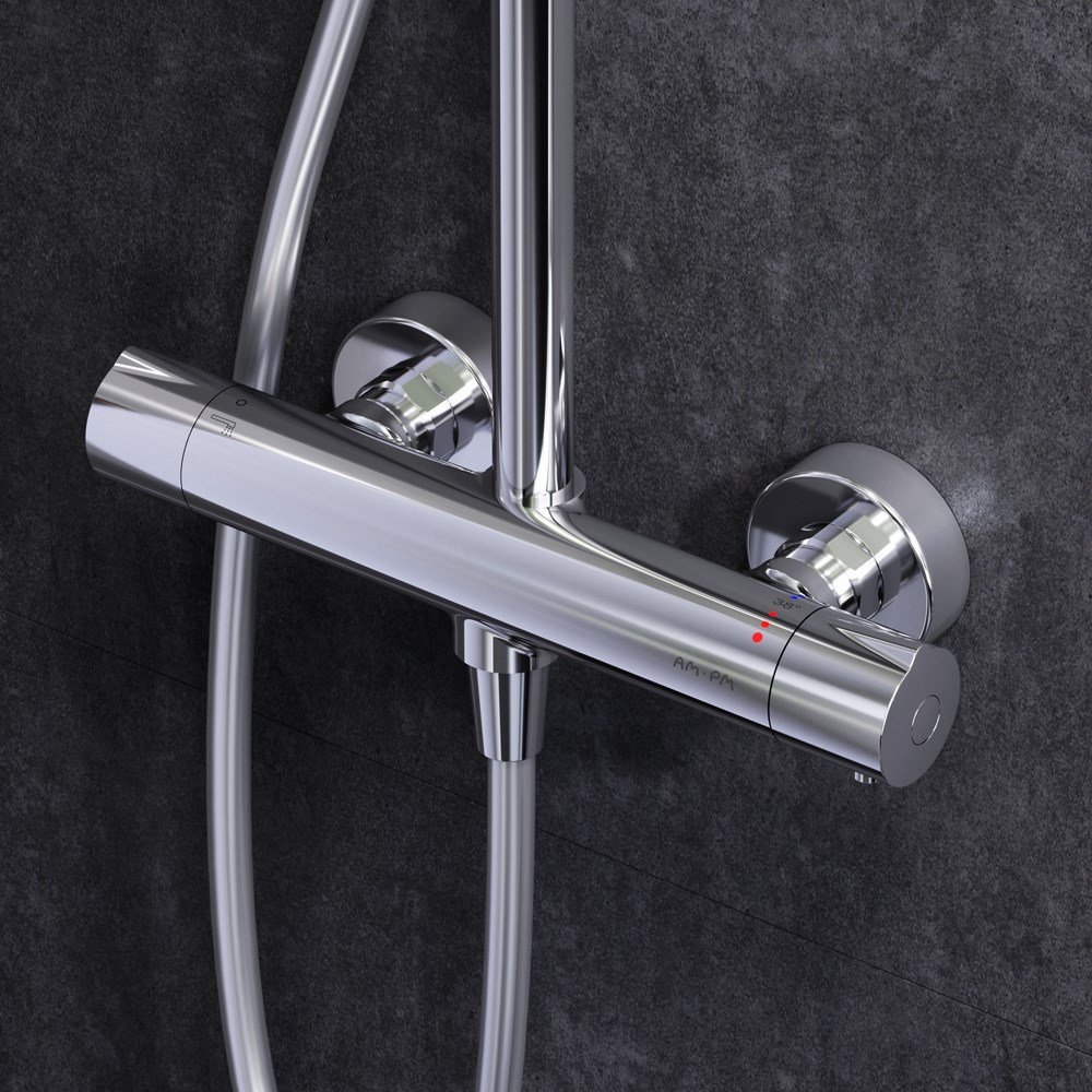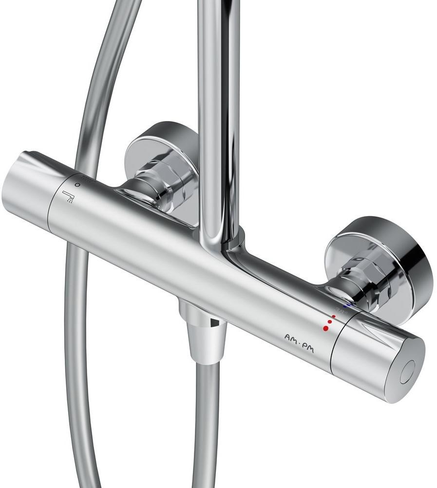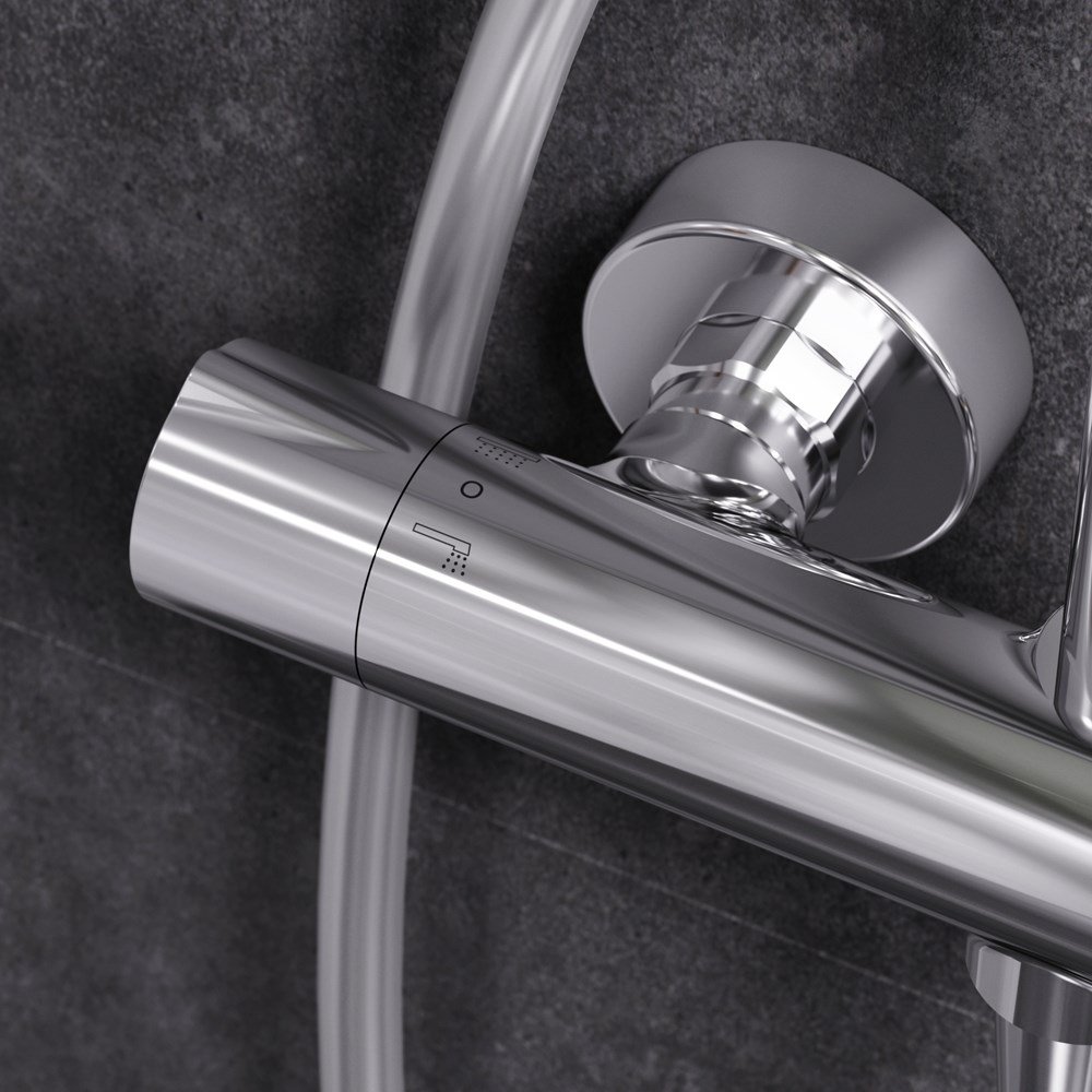 Смеситель для душа с термостатом: термостатический картридж с высокочувствительным термоэлементом стопором безопасности на 38 градусов быстрой реакцией на изменения температуры или давления надежно защищает от ожога даже при внезапном отключении холодной воды. ""