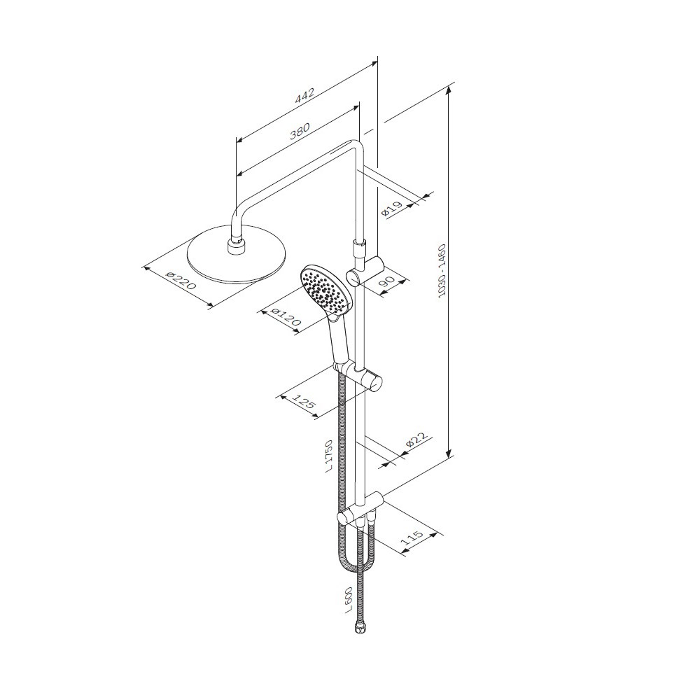 Продуманные детали для удобства использования: штанга регулируется по высоте в диапазоне от 1 030 до 1 460 мм обеспечивая комфорт для людей любого роста шаровый шарнир в держателе верхнего душа позволяет регулировать угол его наклона душевой шланг 1750 мм верхний душ диаметром 220 мм ручной душ диаметром 120 мм.