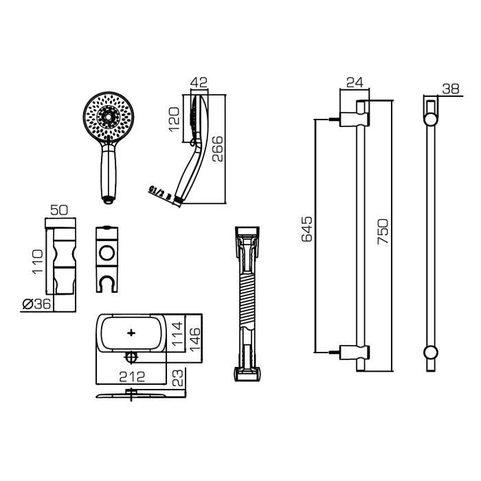 - Душевая штанга: 75 см