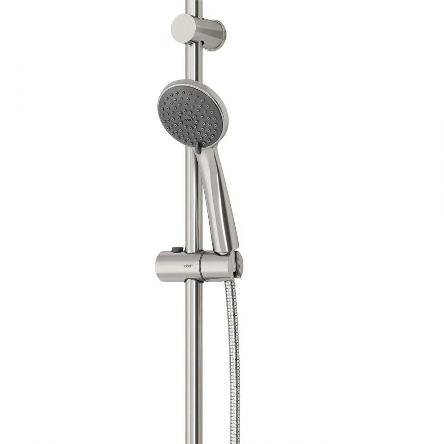 Душевые комплекты Dorff из нержавеющей стали заслуживают отдельного внимания. Очень практичные и удобные в использовании благодаря шлангам с защитой от перекручивания и функции регулировки по высоте, они к тому же выглядят стильно. Функциональный ручной душ и востребованное цветовое решение не позволят им остаться незамеченными.