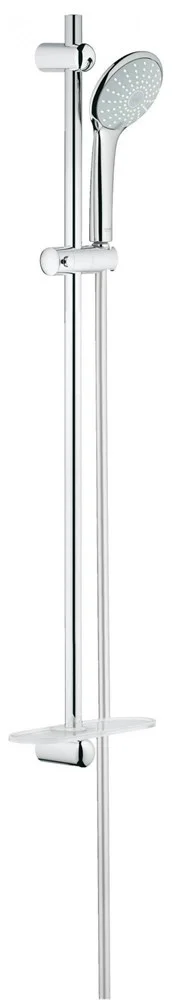 Душевой гарнитур Euphoria 110 Duo сочетает в себе стиль и качество по ошеломительной цене. Ручной душ имеет два режима истечения, в комплект входят ручной душ, душевая штанга 900 мм, полочка, и душевой шланг длиной 1750 для максимального удобства в ванной. Душевой гарнитур вобрал в себя множество технологических решений, которые сфокусированы на комфорте принятия душа. Ручной душ имеет невероятно длинную рукоятку, которая легко трансформирует его в верхний душ, благодаря округлым формам. Технология GROHE DreamSpray® обеспечивает идеальное распределение потока по всем душевым форсункам рабочей поверхности, а GROHE SprayDimmer помогает осуществлять плавный и легкий контроль за потоком. Система SpeedClean® не оставит известковым отложениям шансов, а система Inner WaterGuide продлит срок службы изделия. Ручной душ также имеет The shower head also has Twist-Free, which allows the shower hose to anticipate on all your moves and therefore is never gets tangled up. Very useful from GROHE.