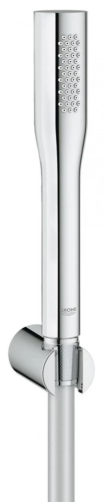 Этот душевой комплект именно для вашей ванной комнаты, он состоит из ручного душа Euphoria Stick Cosmopolitan, настенного держателя и душевого шланга. Душевая лейка очень практична в использовании и при этом выглядит очень красиво. поток воды, который она создает очень плотный, но чувствуется мягко, когда вы принимаете душ и его достаточно чтобы омыть ванну. Благодаря технологии GROHE EcoJoy®, ваше водопотребление минимально, это не только оказывает положительное влияние на окружающую среду, но и бережет ваши финансы. Технология Inner WaterGuide защищает хромовое покрытие GROHE StarLight® изнутри и не дает ручному душу проводить тепло от воды к поверхности ручного душа. Благодаря SpeedClean® у вас не будет проблем с известковыми отложениями. Просто проведите пальцем по поверхности душевых форсунок и известь уйдет!