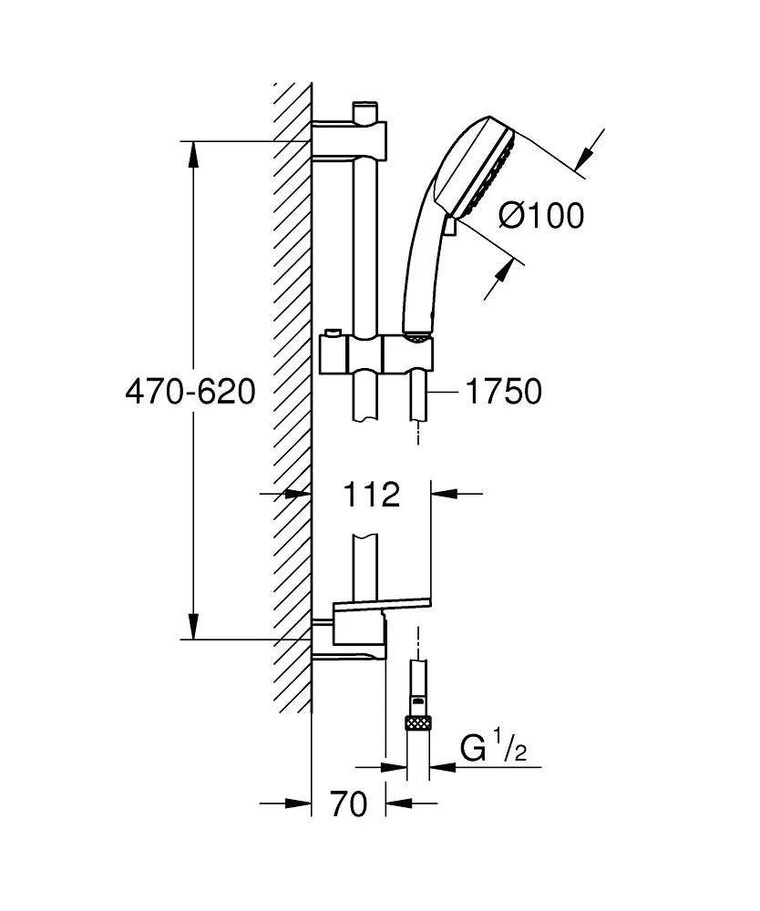 - GROHE QuickFix (регулируемое расстояние между настенными креплениями штанги позволяет использовать для монтажа уже имеющиеся отверстия в стене)