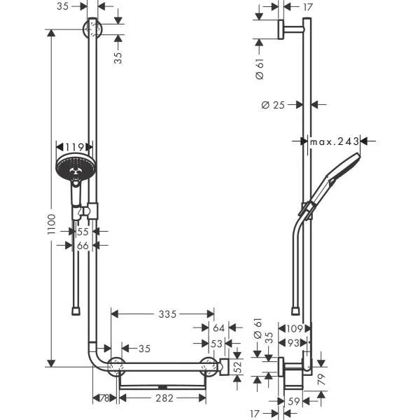 Душевой гарнитур Hansgrohe 120 3jet 26324400 со штангой 110 см