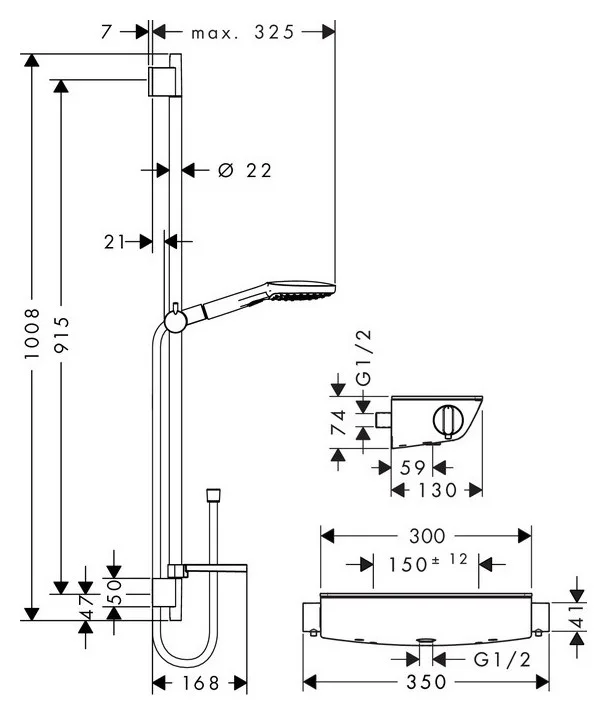 Душевой гарнитур Hansgrohe Ecostat Select/Raindance Select E 120 3jet/Combi 27039000 с термостатом