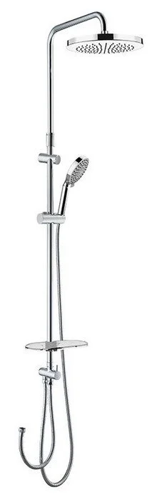 Комплектация: крепления к стене, душевая лейка, душевая штанга, шланг для душа, держатель для душа, верхний душ, полочка.
