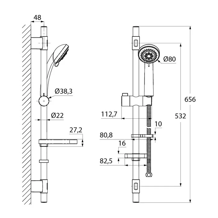 Душевой гарнитур IDDIS (TSH1501) 656 мм лейка 3F D80 мм