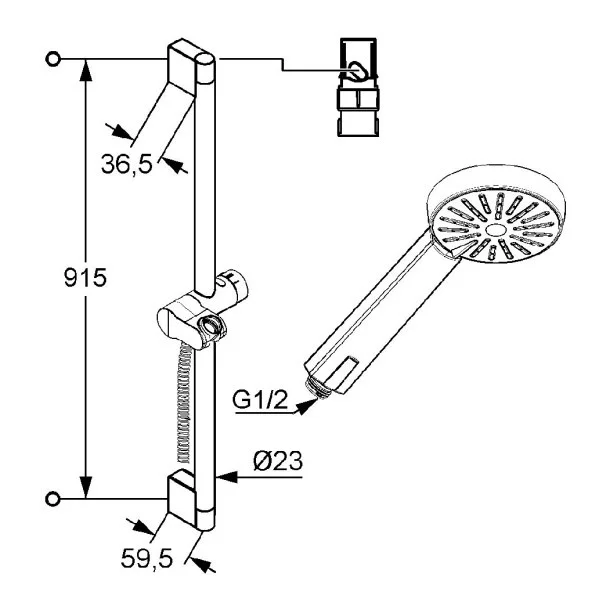 • передвижной держатель для душа, регулируемый по вертикали и горизонтали