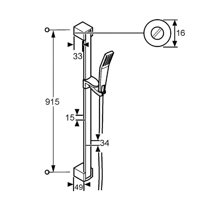 - В комплекте: душевая лейка, шланг для душа 160 см, держатель душа, штанга 90 см
