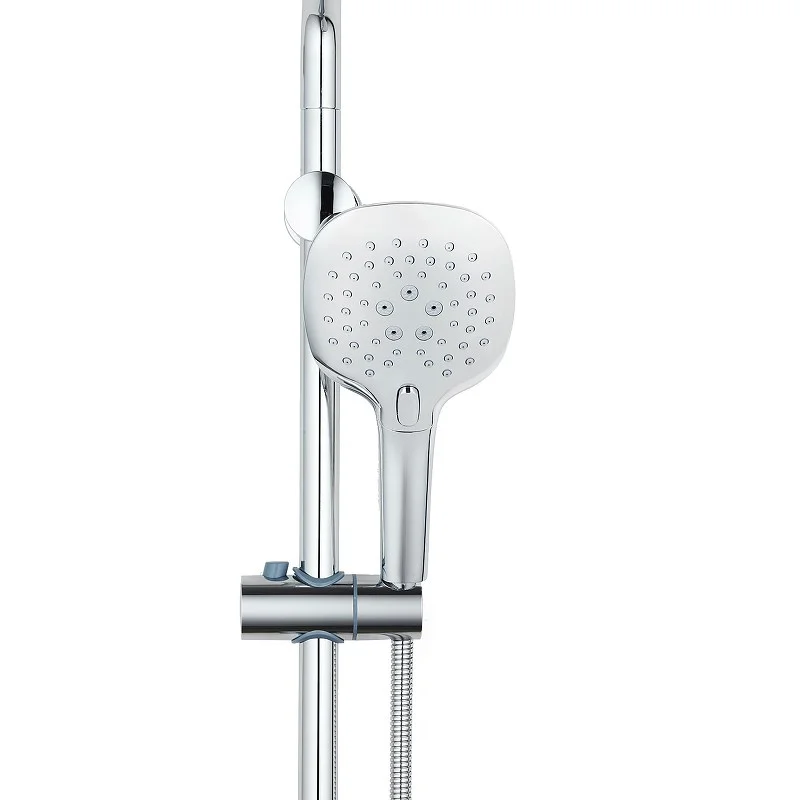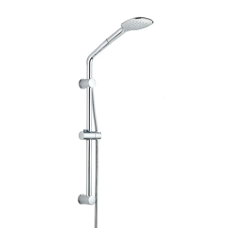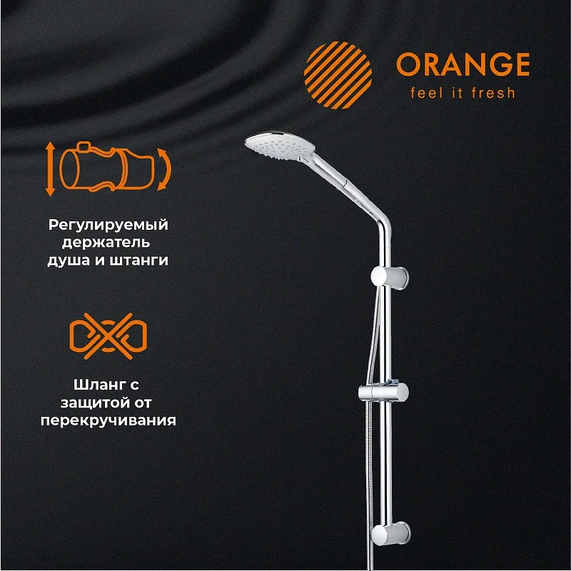 Душевой комплект Orange OS084 в цвете глянцевый хром: ручной душ 120х130 мм (3 режима) на гибком полутораметровом шланге (в металлической оплетке) с защитой от перекручивания. Держатель ручного душа на штанге с регулировкой угла наклона и по высоте, а также предусмотрен держатель верхний для ручного душа. Штанга 750 мм с подвижным держателем (возможность установки в старые отверстия). Форсунки ручного душа с функцией легкого очищения от известкового налета.