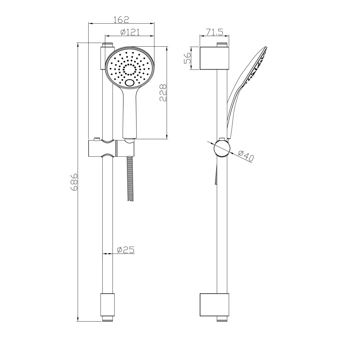 Стойка для душа, Регулируемое по высоте крепление для лейки, Душевой шланг, Душевая лейка