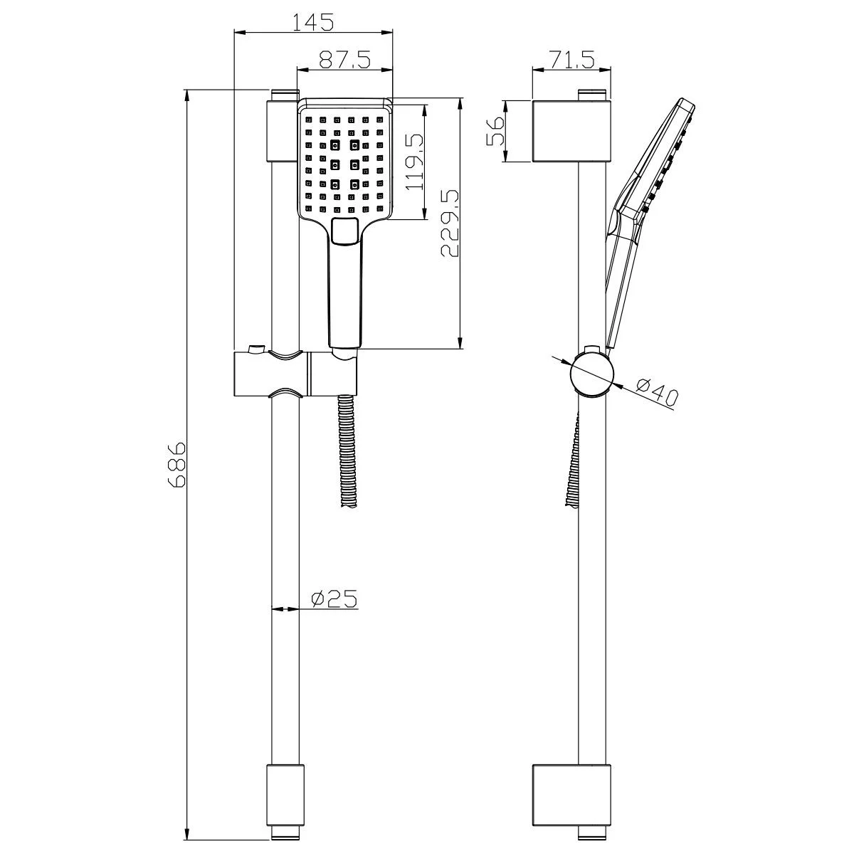 Стойка для душа, Регулируемое по высоте крепление для лейки, Душевой шланг, Душевая лейка