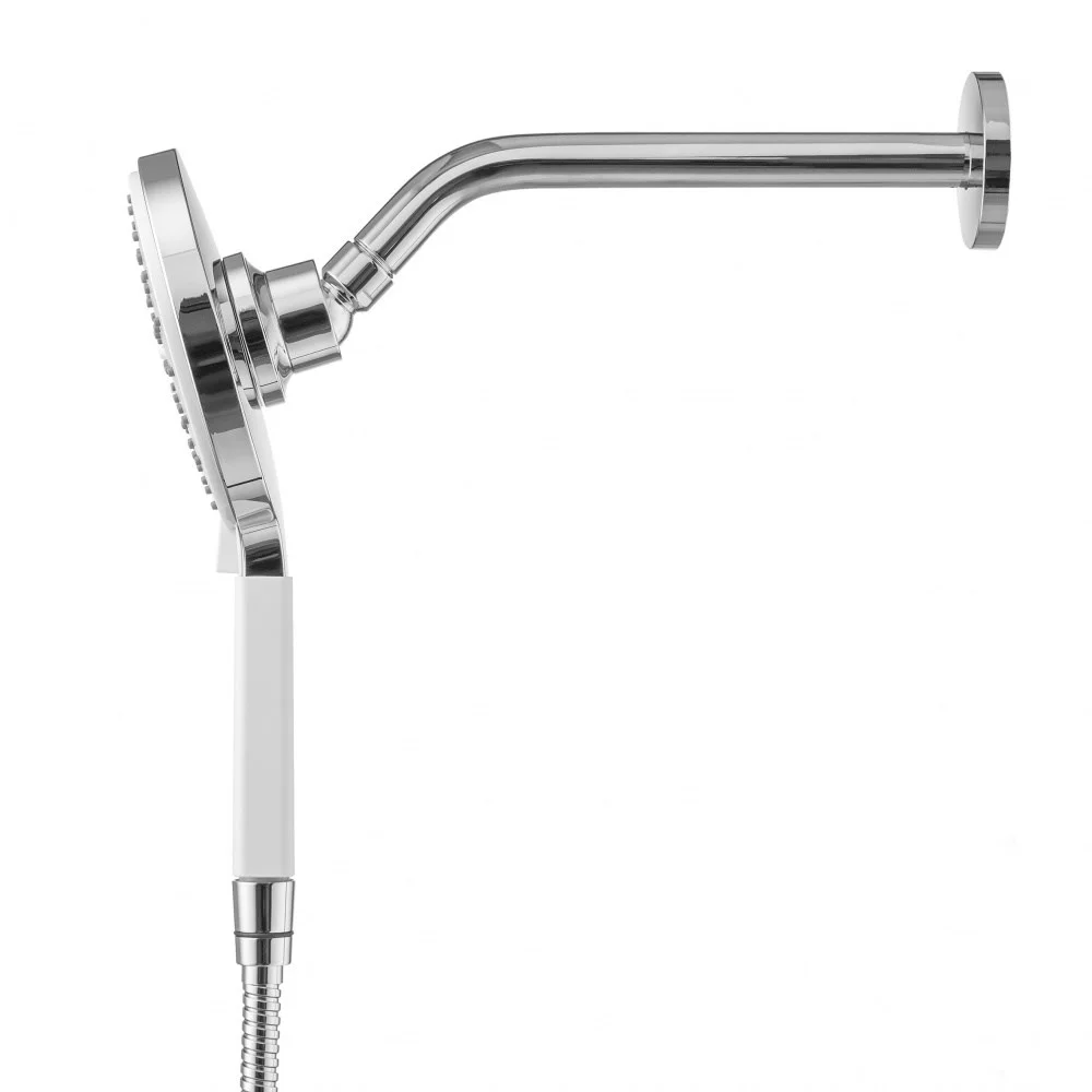 Ручной душ на магнитном поворотном кронштейне. Душевой комплект - альтернатива верхнему душу. 3 режима. ABS пластик. Поток 17,0 л/мин. Диаметр лейки 140 мм. Магнитный поворотный кронштейн полностью из латуни. Монокрепеж к стене. Шланг металлический 1,75 м.