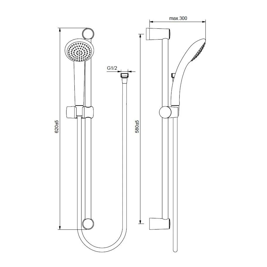 - Штанга душевая 600 мм, Ø18 мм