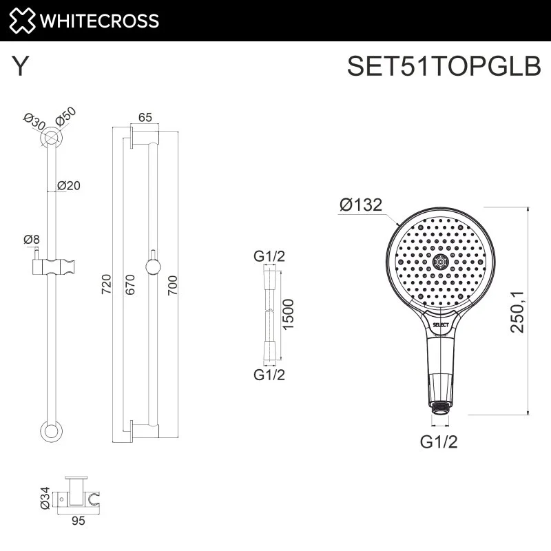 Душевой гарнитур WHITECROSS SET51TOPGLB брашированное золото