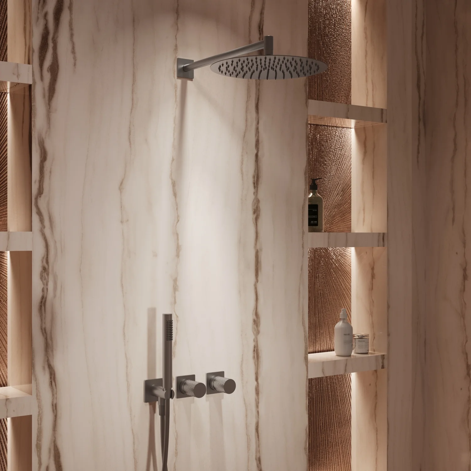 Душевая система Vincea Alto VSFW-6AL1GM встраиваемый, 2 режима, 30см S304 верх душ, вороненая сталь