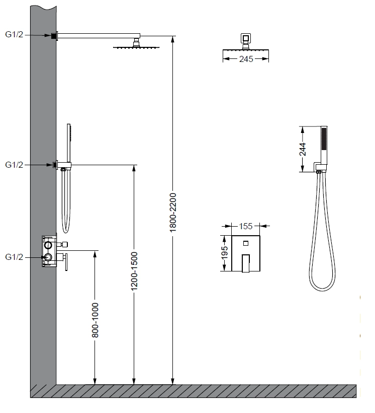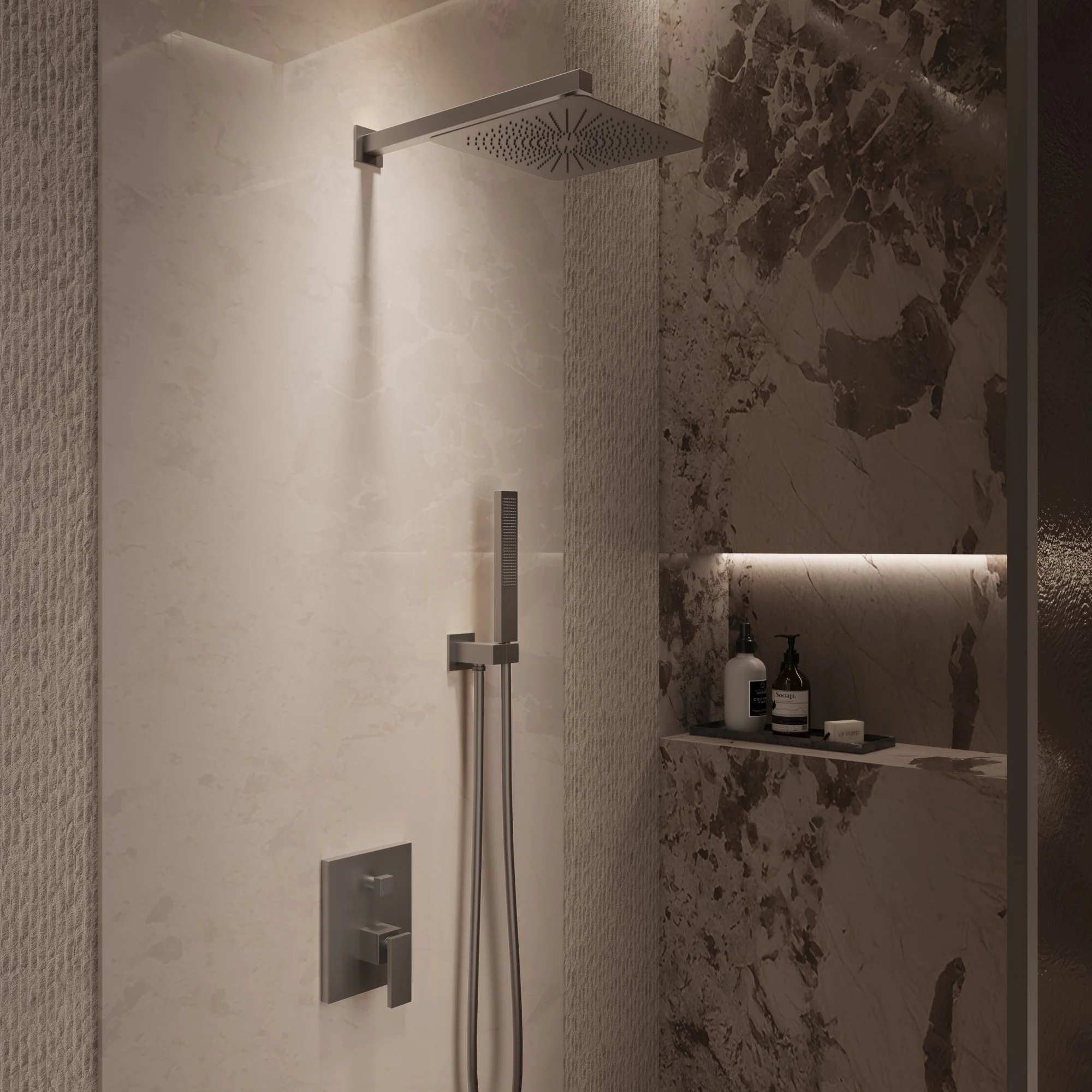 Верхний душ, ручной душ, смеситель со встраиваемой частью