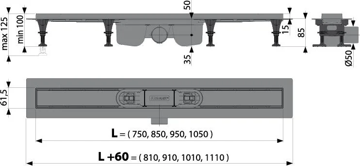 - Регулируемые монтажные ножки 0–27 мм, позволяют быстро и удобно установить желоб и выровнять его в горизонтальной плоскости