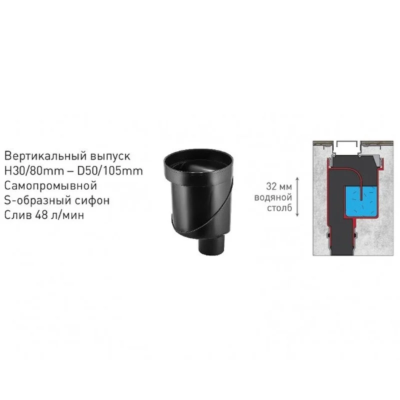 вертикальный выпуск D50/105 H50, пропускная способность 48л/мин, монтаж 360°