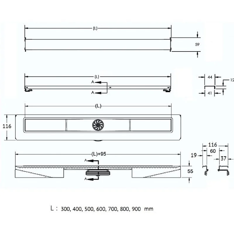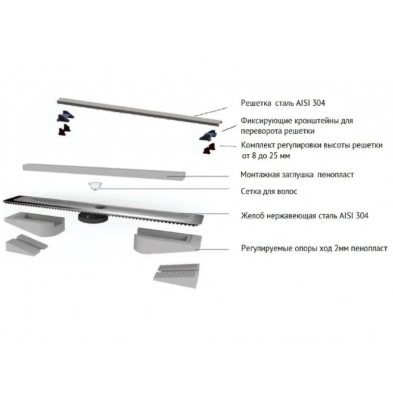 Решетка и желоб водосток, нержавеющая сталь AISI 304