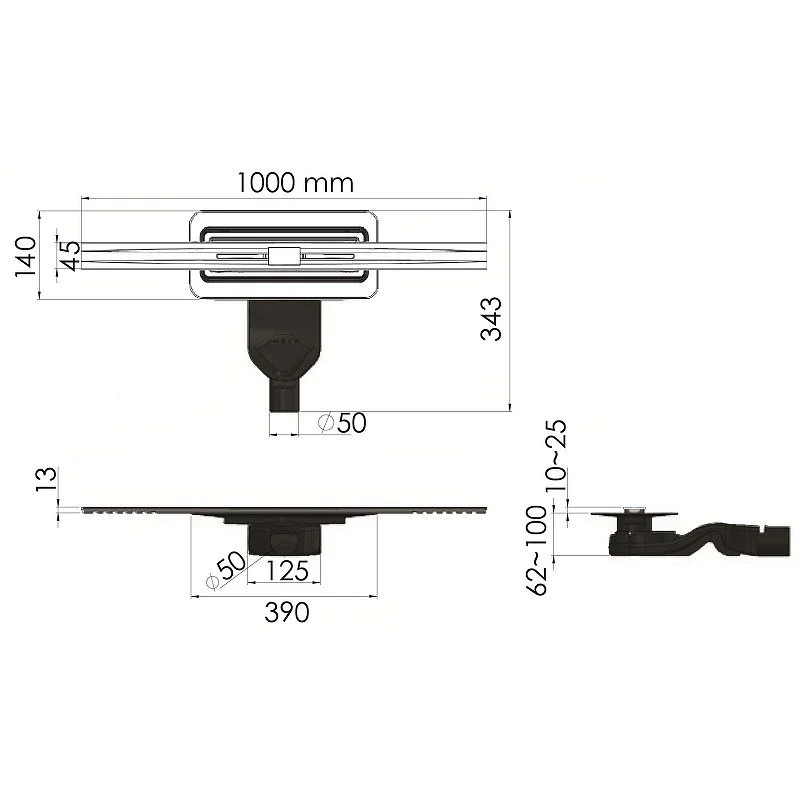 Душевой лоток BERGES SIMPEL 1000, хром глянец, S-сифон D50 H60 боковой