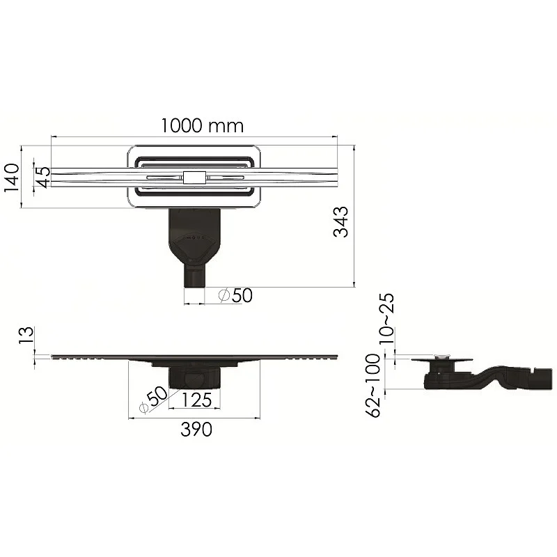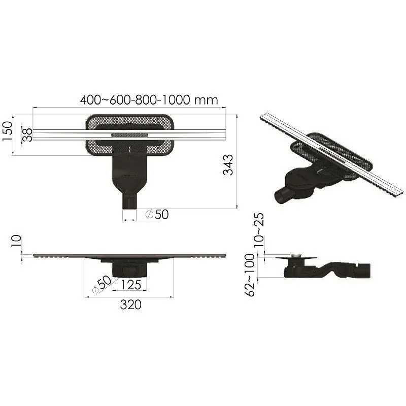 Решетка-желоб водосток, нержавеющая сталь AISI 304