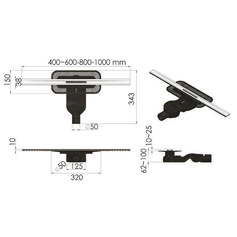 Решетка-желоб водосток, нержавеющая сталь AISI 304