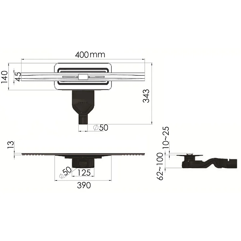 горизонтальный выпуск D50 H60, пропускная способность 42л/мин, монтаж 360°
