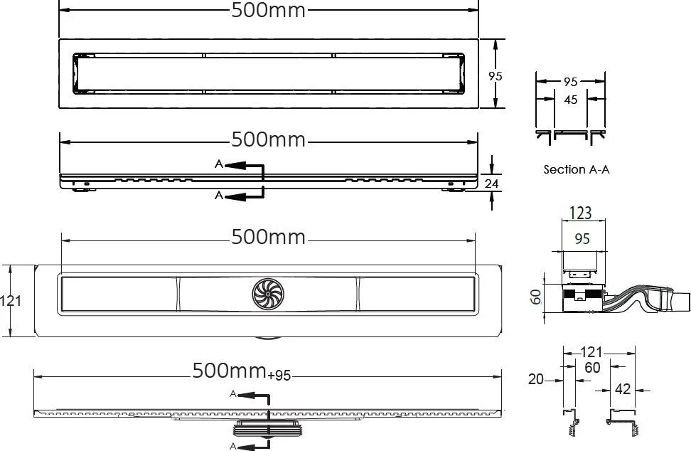 горизонтальный выпуск D50 H60, пропускная способность 42л/мин, монтаж 360°