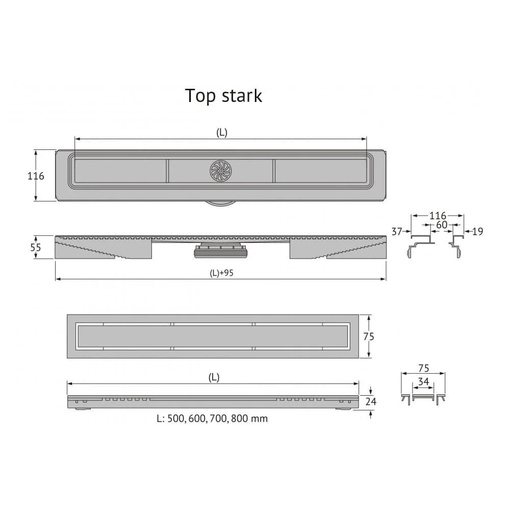 горизонтальный выпуск D50 H60, пропускная способность 42л/мин, монтаж 360°