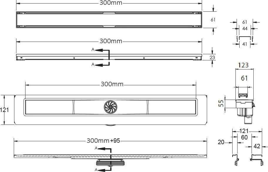 Душевой лоток BERGES В1 Antik 300, матовый хром, S-сифон D50/105 H50 вертикальный 090021