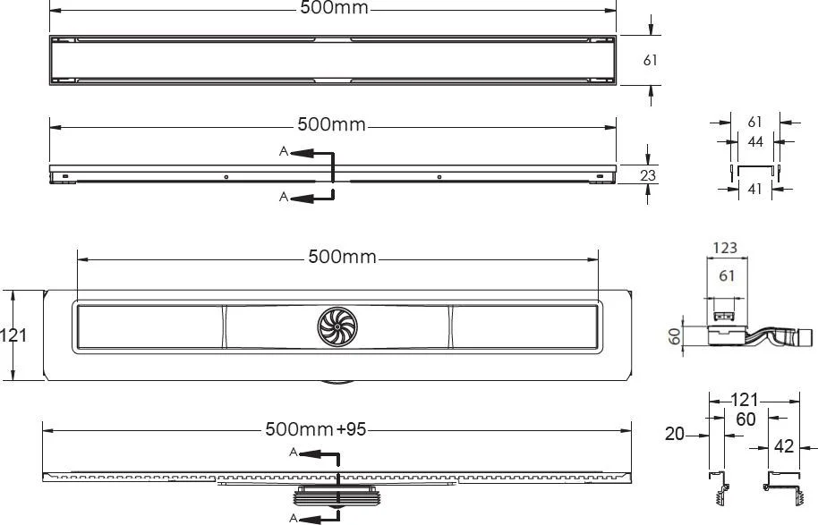 горизонтальный выпуск D50 H60, пропускная способность 42л/мин, монтаж 360° Монтажный ключ, пластик
