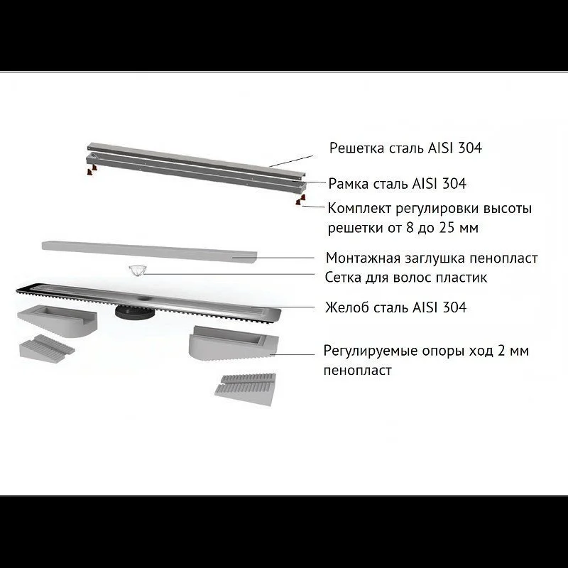 Монтажная заглушка и регулируемые по высоте ножки, пенопласт