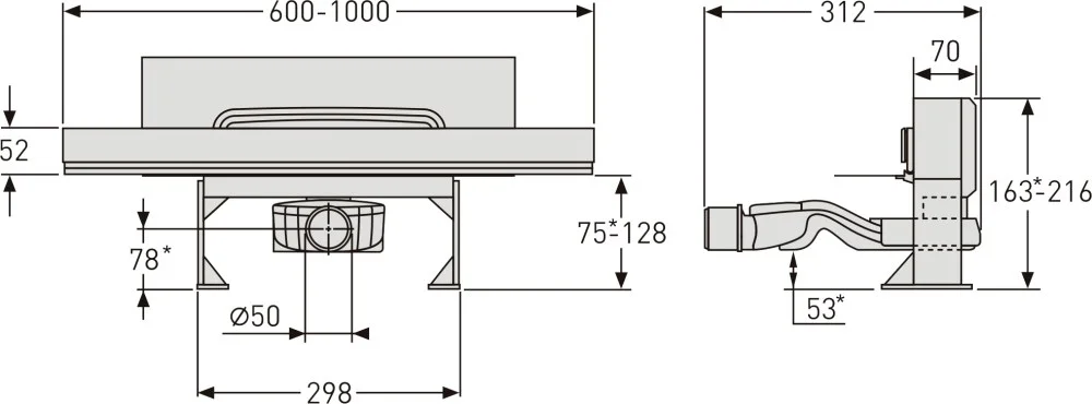 горизонтальный выпуск D50 H60, пропускная способность 42л/мин, монтаж 360°