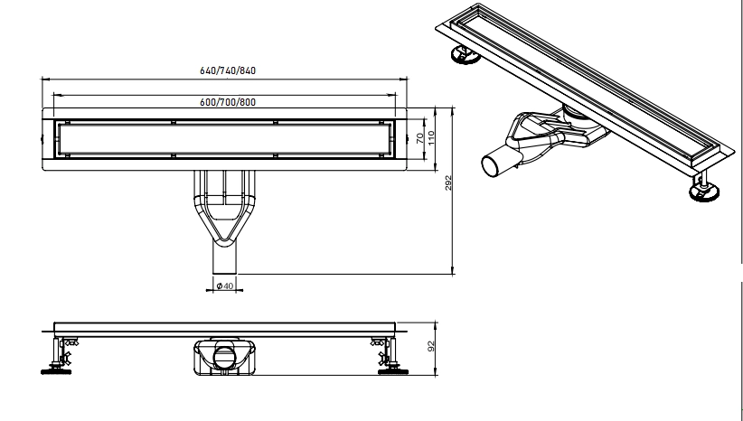 Душевой лоток Ceramalux CL6138-70 щелевой, нержавеющая сталь, сатин 700 мм 2, сатин