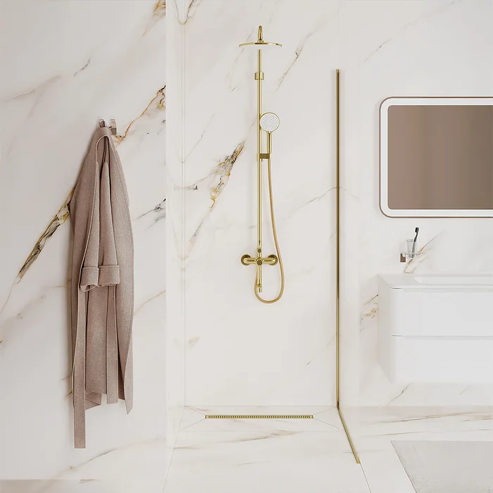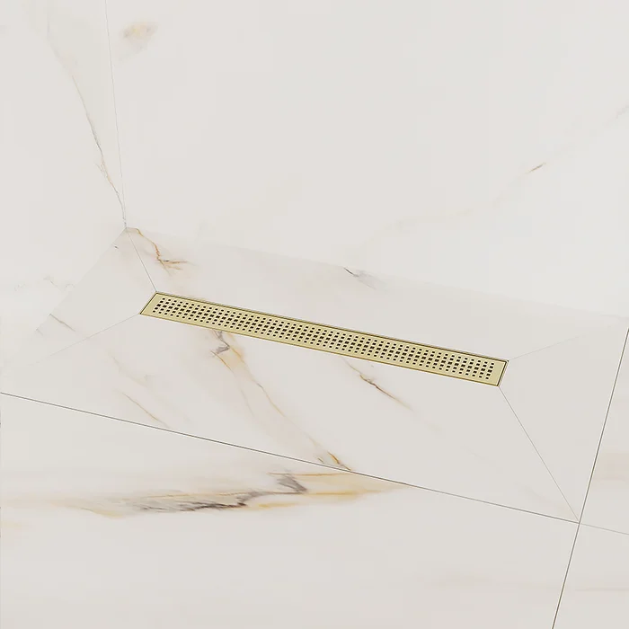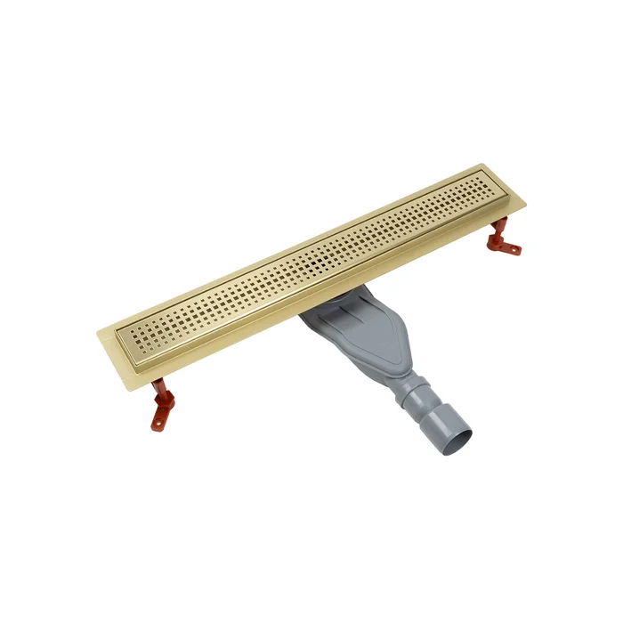 Душевой лоток IDDIS® в золотом цвете с горизонтальным выпуском и сифоном 360° предназначен для отведения воды в канализацию из зоны принятия душа. Он заменит традиционные поддоны с бортиками, предлагая универсальный дизайн решетки и возможности для создания стильного интерьера ванной комнаты. Длина решетки — 600 мм; подходит для плитки толщиной до 12 мм.